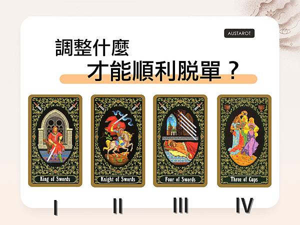 選擇到這組牌的朋友,相信你在現實生活當中也是個挺擅長社交,朋友也挺多的人喔。畢竟這樣的牌組多半代表的是人際關係與關係發展,因此奧斯老師會說你的人際關係挺不錯或是個性也是挺外向的人,有時候也會讓大家疑惑你怎麼會是單身的人。但偏偏外向是你的個性與展現,但實際上你好像也不知道自己喜歡什麼樣的對象或是適合什麼樣的對象。因此奧斯老師反而會建議挑到這組牌的單身朋友,先釐清自己對情感的標準與方向,然後朝這樣的方向去努力,不僅僅只是外在表面的外向,自己的心房也要好好打開喔。