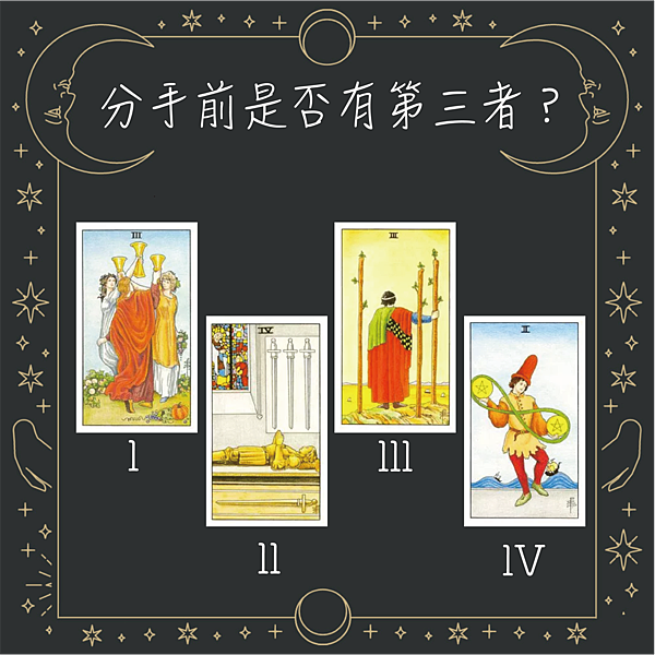 這張牌的出現透露出關係中曾有外力的介入。對方在情感上可能出現搖擺,與他人產生曖昧、情緒依附或親密互動,雖然未必公開發展成明確的關係,但已越過單純友情的界線。奧斯老師指出,這種狀況往往發生在感情開始出現距離時,對方尋求他人安慰、共鳴或被理解的感覺。這樣的第三者,可能是工作上頻繁接觸的異性、舊友,或在社交中偶然產生火花的人。你或許早已感覺到那份微妙的不對勁,例如聯絡變多、語氣變輕、態度閃爍。這張牌的能量顯示出「情感重疊期」的存在,也意味著對方在分手前心已不再完全屬於你。